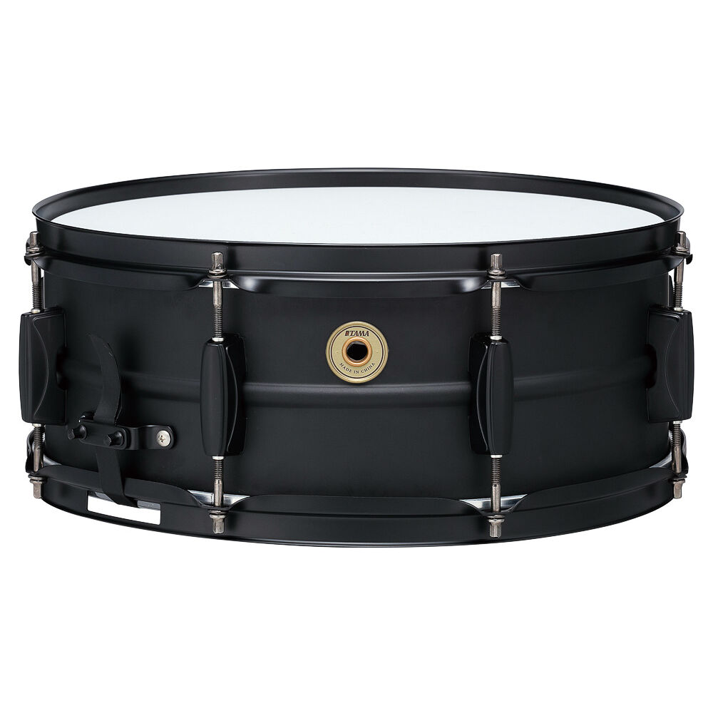 A caixa de aço Tama Metalworks proporciona um tom brilhante com uma nitidez precisa em afinações altas e uma ressonância suave em afinações baixas. A cor das ferragens pretas é combinada com a belíssima cor preta fosca da caixa.