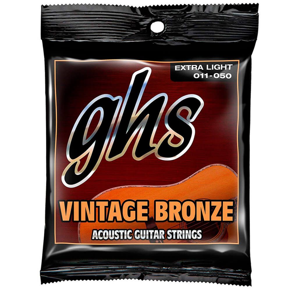 Essas cordas VN-UL Ultra Light Vintage Bronze da GHS são adequadas para equilibrar o som de guitarras acústicas que são consideradas muito brilhantes.