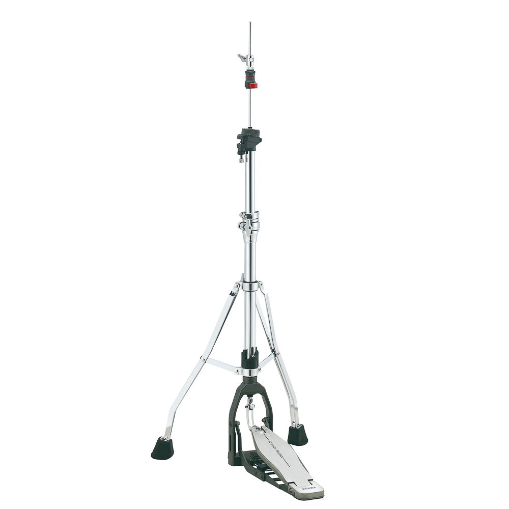 Máquina de chimbal Dyna-Sync HHDS1 com sistema de ação por Direct Drive. Pernas duplas com pés emborrachados e âncoras Duo-Spike. Amortecedor de molas para redução de ruídos. Presilha de chimbal Quick-Set. Ajuste de tensão com 6 níveis e ajuste do ângulo da sapata.