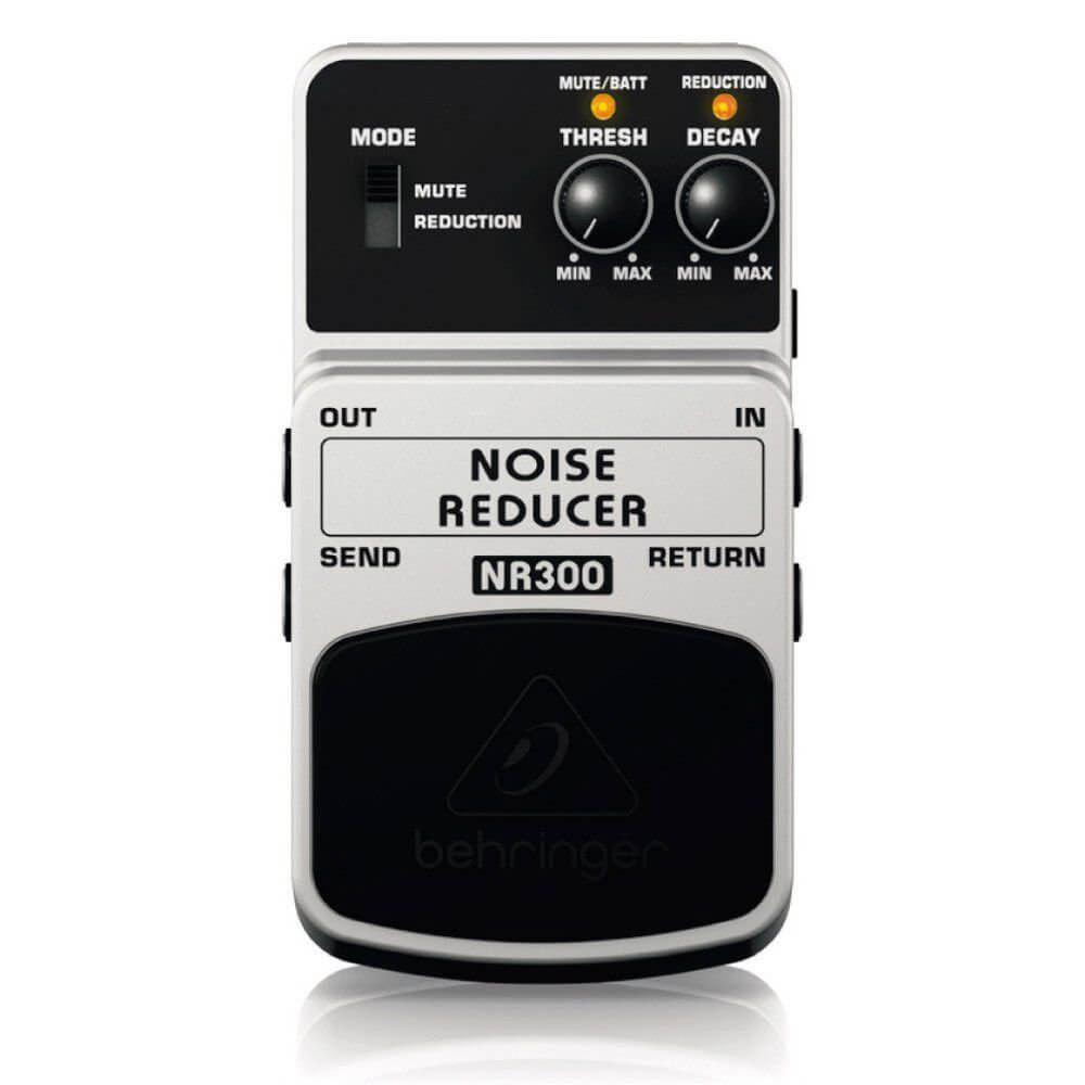 Este pedal de efeitos de última geração destina-se a suprimir sussurros e zumbidos sem prejudicar o som no seu conjunto. Graças às suas inúmeras funcionalidades, o NR300 conserva o tom original do sinal que suporta sua dinâmica.Com Mode, você pode selecionar entre os modos Mute e Reduction. No modo Mute, o sinal de entrada total é silenciado, por exemplo, para eliminar as interferências durante as pausas na reprodução. No modo Reduction, são suprimidas as passagens silenciosas (se forem audíveis sussurros ou zumbidos) de forma eficaz. Thresh(old) um limiar de nível no modo Reduction. Se o nível de intensidade sonora de sinal de entrada cair abaixo de um certo valor, o sinal é suprimido. Decay ajusta o tempo de retorno até a supressão do sinal ser totalmente interrompida, depois do sinal ter ultrapassado novamente o valor do limiar.