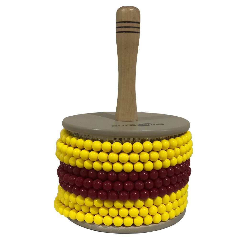 Instrumento de percussão versátil e muito usado no mundo da musica atual. O afoxé de madeira com miçangas é produzido um som quando se giram as miçangas em um sentido, e a extremidade do instrumento (o cabo) no sentido oposto.