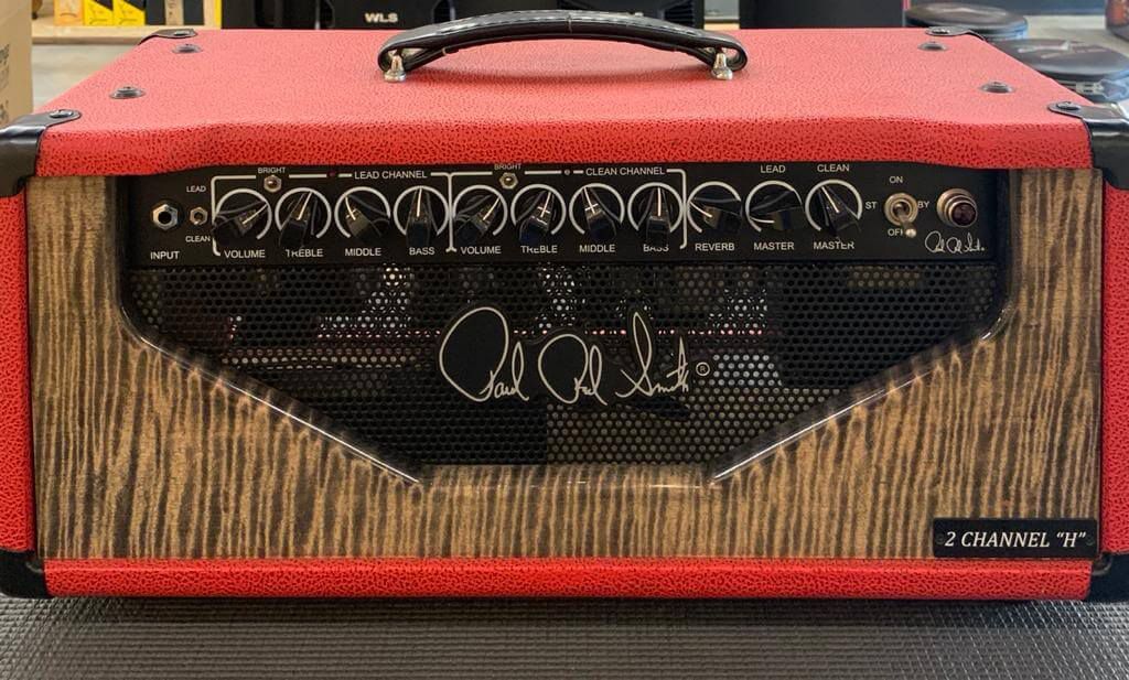 O amplificador valvulado PRS Two Channel "H" é feito à mão em Stevensville, Maryland. Ele oferece um timbre moderno, "na sua cara" timbre e recursos proprietários do Heyboer transformadores. Os 2 canais H é configurado com volume master independente, agudos, médios, graves e controles de ganho com reverberação master. O canal lead exclusivo oferece distorção suave e poderosa com sustentação líquida, enquanto o canal limpo tem agudos brilhantes e limpos e amplo headroom. Um loop de efeitos com send e retorn ajustáveis também é apresentado neste amplificador de polarização fixa. O "H" tem duas válvulas de potência 6L6 produzem um amplificador rápido e articulado bem adequado para a música moderna de hoje, onde afinações alternativas são obrigatórias.