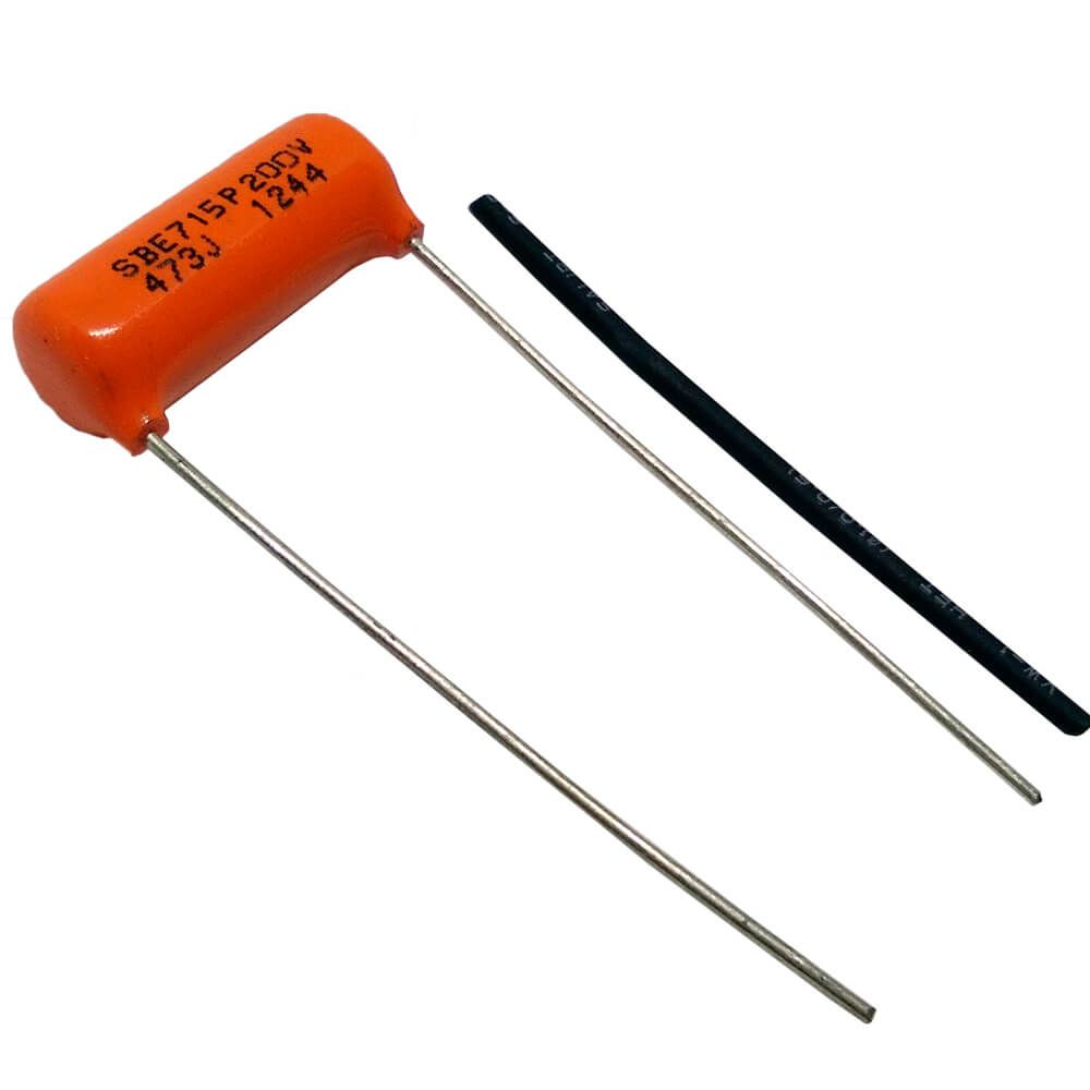 Para bobina dupla humbucker é usada para o capacitor 0.022 porque a baixa frequência da bobina dupla é inerentemente pesada não é necessário usar 0.047. A mudança de som de 0.022 é mais delicado. Baixo elétrico é usado para 0.068.