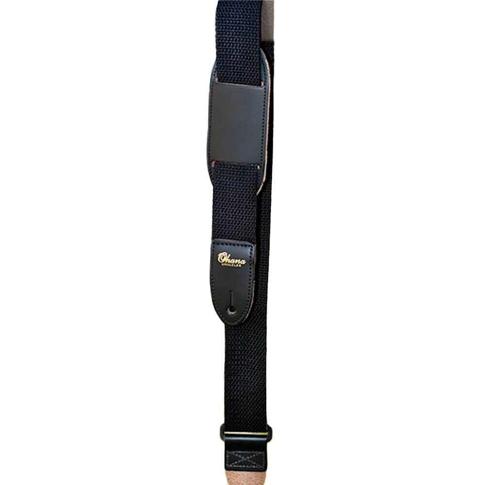 A alça de ombro Ohana USS-02 mede 1,5" de largura, com uma almofada de couro e um logotipo Ohana com detalhes dourados.