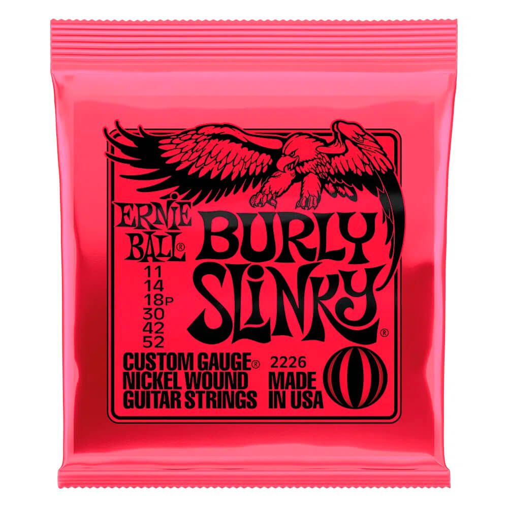 As cordas Ernie Ball Burly Slinky são amplamente conhecidas por seu timbre de classe. Estas cordas são fabricadas com precisão para os mais altos padrões e especificações mais exigentes, garantindo a consistência, desempenho ideal e durabilidade. Cordas Burly Slinky são feitas de fio de aço niquelado envolto em torno de um fio hexagonal de aço no núcleo. As cordas lisas são feitas de aço carbono temperado banhado à estanho, produzindo um tom bem equilibrado para a sua guitarra.