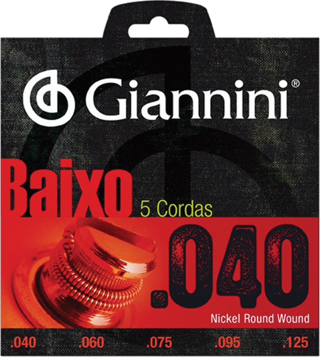 Encordoamento para baixos de 5 cordas e instrumentistas com Equot;pegadaEquot; entre leve e média; Alma: aço; Revestimento: níquel; Acabamento: bolinha; Comprimento de escala: 864 mm.