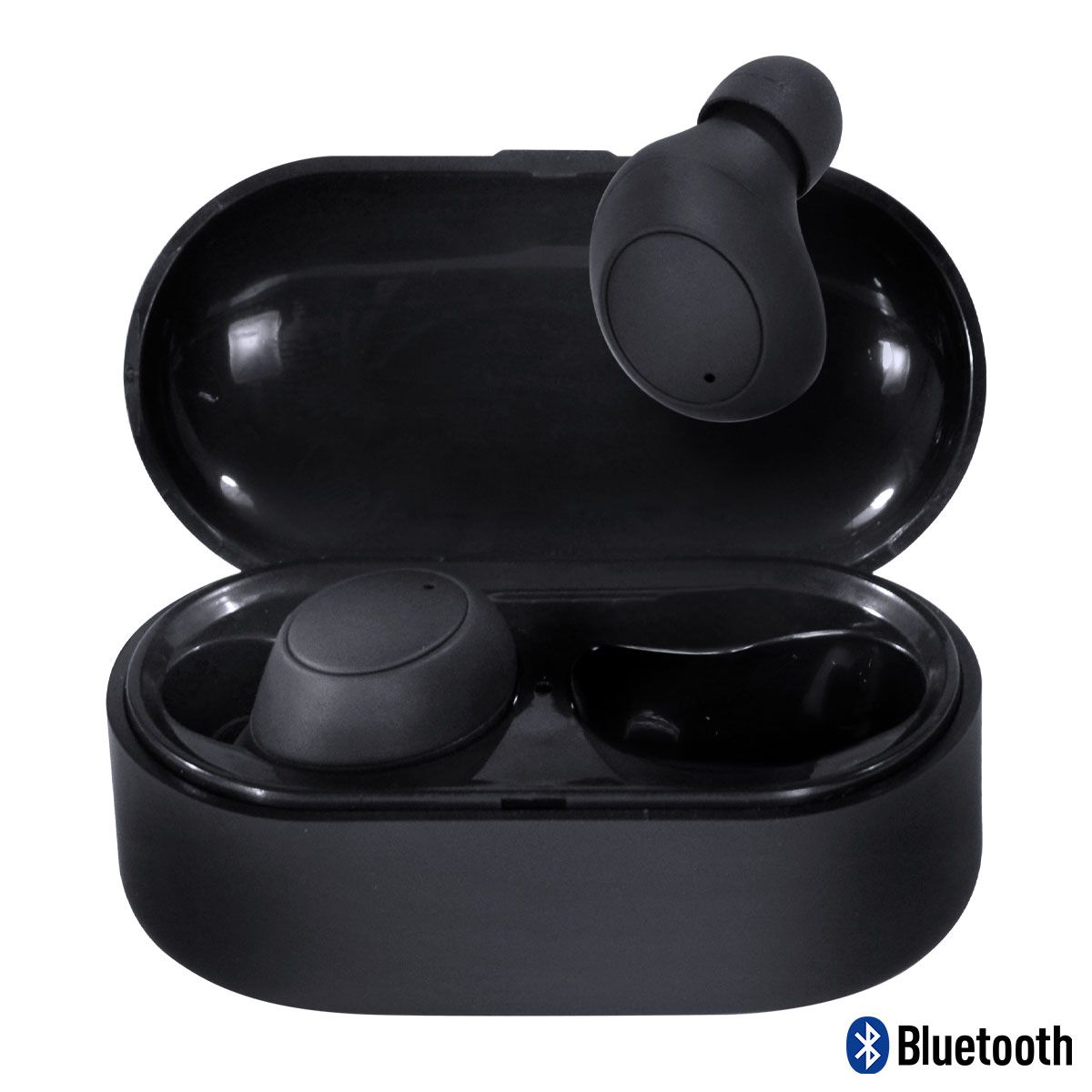 Fone sem fio estéreo real (TWS) que podem ser usados separadamente ou pareados.