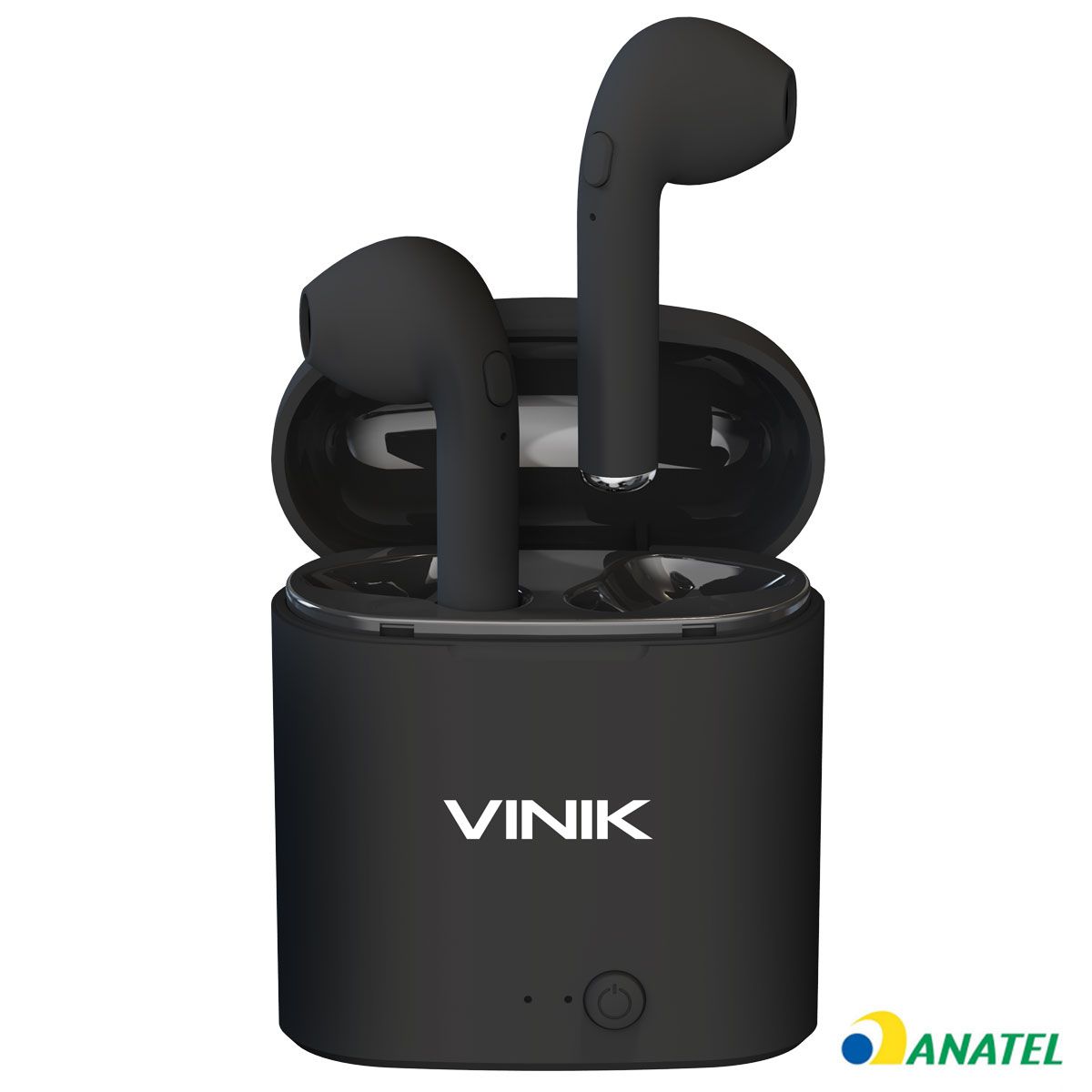 Fone sem fio estéreo real (TWS) que podem ser usados separadamente ou pareados.