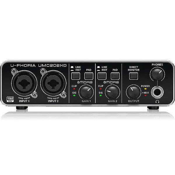 O UMC202HD é uma interface de áudio HD de Linha U-Phoria. Com ela é possível gravar seus sons em minutos com toda a conectividade necessária para seus microfones, guitarras, teclados etc. O modelo possui 2 (dois) pré-amplificadores Midas que incluem Phantom Power de 48 volts para microfones condensadores, todos passando por uma perfeita conversão 24-Bits e 192 kHz para a melhor qualidade de som possível.