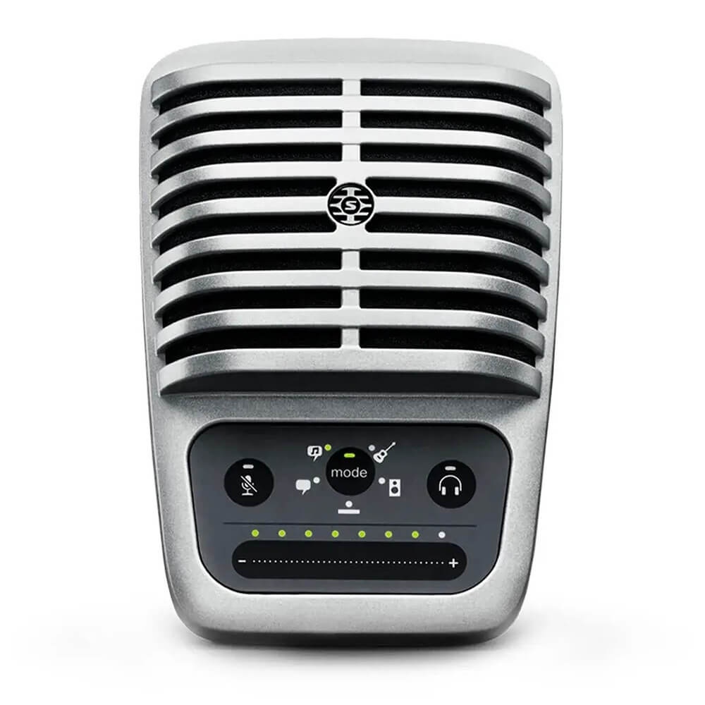 Apesar de sua aparencia old school, o microfone Shure MV51 MOTIV USB oferece opcoes de gravacao de alta tecnologia que voce pode usar em seu estudio domestico e seu equipamento movel. O MV51 permite capturar o som deliciosamente nitido, e possui cinco modos predefinidos DSP integrados, que permitem gravar vocais confortavelmente, material de narracao, instrumentos e muito mais, tudo com o mesmo microfone. Uma saida de fone de ouvido permite que voce monitore em tempo real, esteja voce gravando em seu computador, dispositivo iOS ou dispositivo movel Android. Um pratico painel de toque permite controlar todas as funcoes do MV51 e, para maior comodidade, ha um suporte integrado ao MV51.