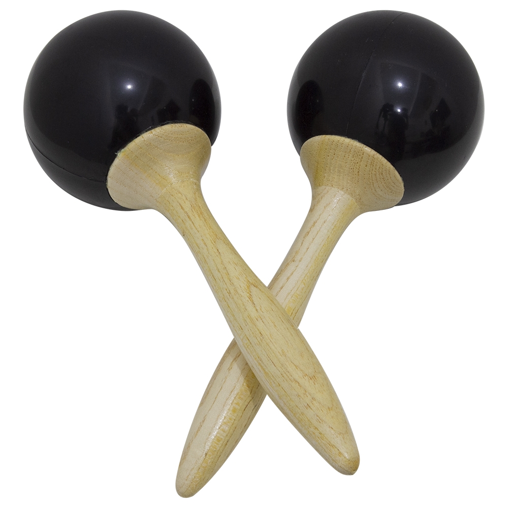 Par de maracas redondo fabricado em madeira e plástico, é um instrumento musical fácil de usar ideal para estimular o aprendizado musical.