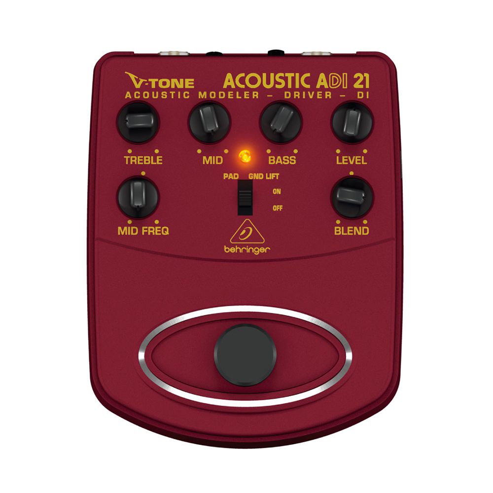 O EQ de 3 bandas do Behringer V-Tone ADI21 proporciona uma varredura dos médios para um controle de possíveis retornos ao mesmo tempo que elimina harmônicas mais excessivas. O ADI21 também funciona como um Direct Box profissional para aplicações tanto ao vivo como em gravações. Contém uma entrada XLR banhada a ouro, com uma chave de aterramento e um pad de -20dB. O controle de Blend permite que você misture sua entrada de som acústico ao sinal processado para uma maior profundidade de som.
