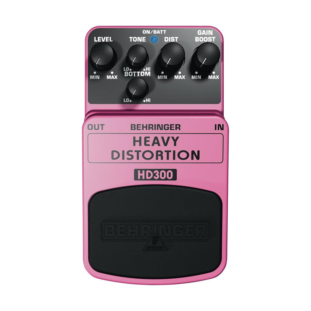O HD300 da Behringer e um pedal de efeitos para guitarra com efeito de distorcao. Libere toda sua raiva com o pedal Behringer Heavy Distortion HD300. Basta ligar este pedal no seu amplificador para conjurar toda a agressividade distorciva que voce precisa para tocar metal moderno. Este pedal de efeitos de alta qualidade permite que voce produza uma distorcao densa, semelhante a valvulas e um sustain infindavel. Gracas as suas funcionalidades de elevado desempenho, o Behringer HD300 permite que voce tenha os sons de distorcao tipicos do Hard Rock ou do Metal moderno. Tenha ao seu alcance todos os tipos de distorcao O HD300 da a voce uma incrivel variedade de sonoridades e distorcoes possiveis atraves dos controles de Tone, Bottom, Gain e Dist. O potenciometro Bottom permite que voce trabalhe nas frequencias mais baixas, ou graves, aumentando ou cortando o ganho dessa gama. Ja o Tone, permite que voce molde todo o som no geral. Ja o Gain Boost, permite controlar o sustain. Por fim, o Dist e responsavel por definir o volume do efeito distorcivo.