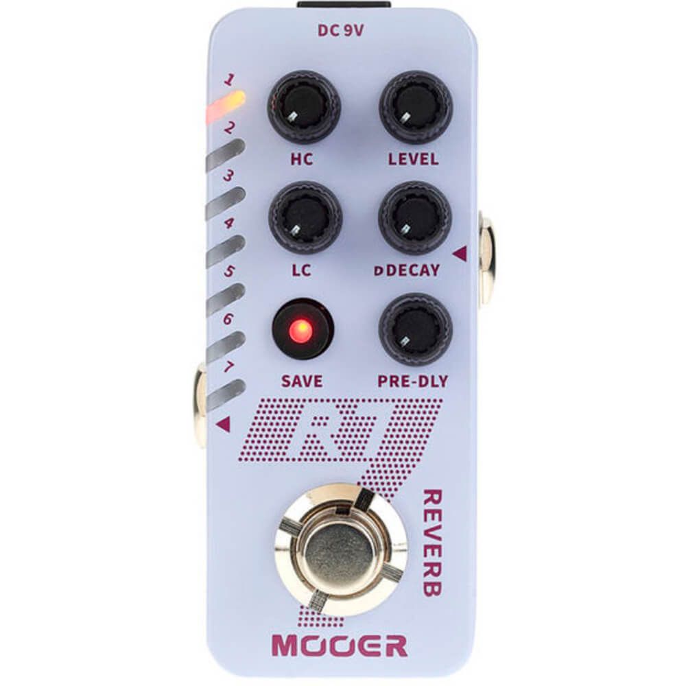 O pedal que traz efeitos de reverberação ricos e clássicos para a nova série Micro. Baseado em um conjunto totalmente novo e exclusivo de algoritmos de reverberação, o R7 contém 7 tipos de efeitos de reverberação (de "Church" à "Cave"). Os controles de "Low Cut" e "Hi Cut" permitem que os usuários ajustem frequências redundantes e moldem o timbre livremente, enquanto as funções de "Trail" incorporadas podem ser alternadas entre o modo normal e o modo "Trail On" para permitir que os efeitos desapareçam naturalmente. Claro, as configurações de cada efeito podem ser salvas usando os diferentes slots predefinidos para que você nunca precise se preocupar em perder aquele timbre perfeito!