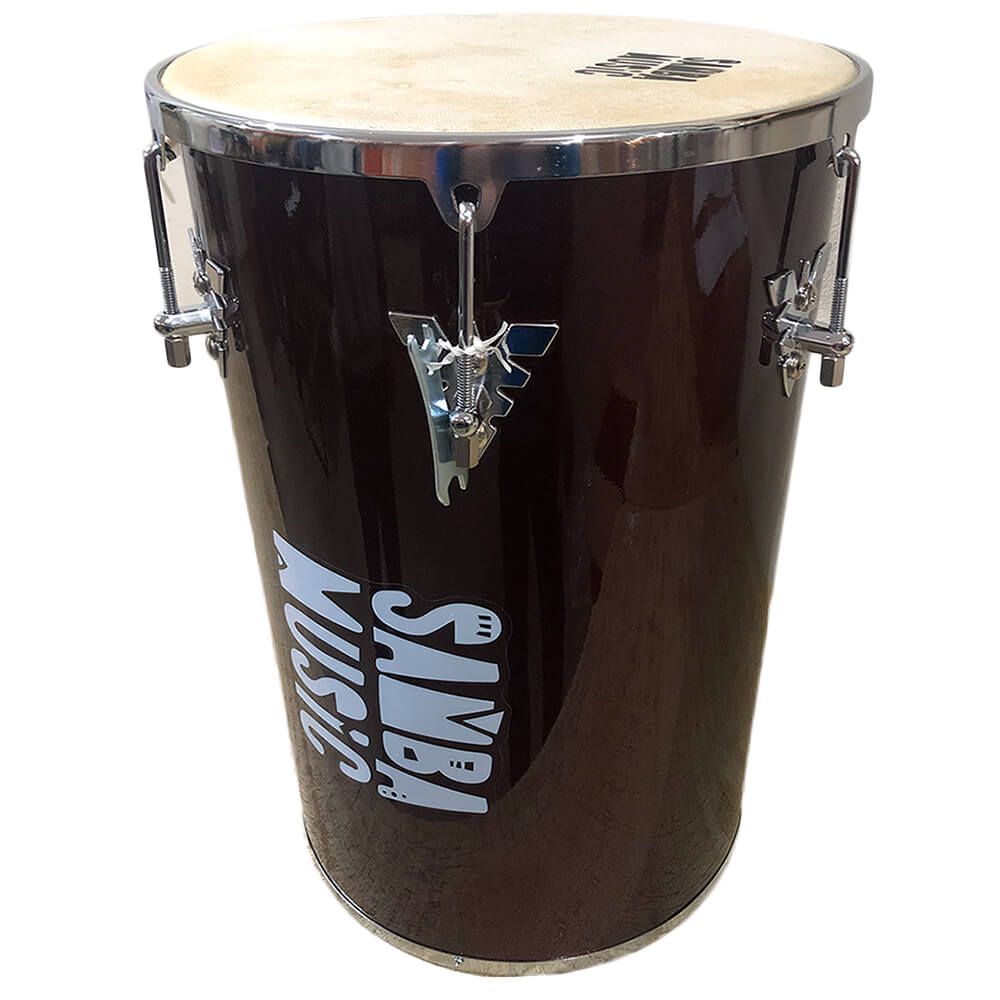 Corpo de madeira, revestido com lâmina de alto brilho e pele de couro que transmite uma sonoridade grave para marcação. O rebolo de madeira possui um som grave e aberto para marcação também.