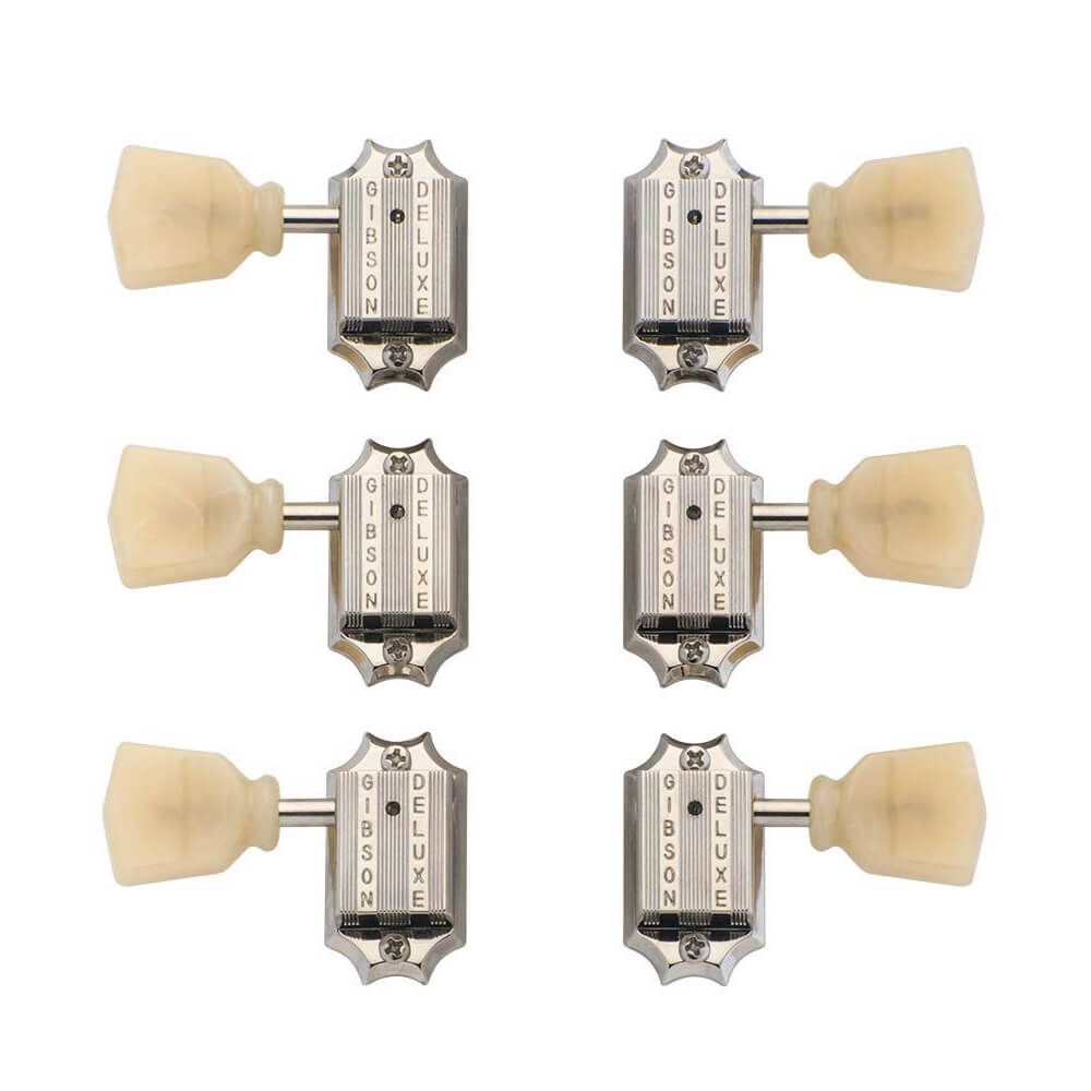 - Tarraxa niquelada para guitarra 3+3 com botões perolados Gibson e Jogo com 6 peças.