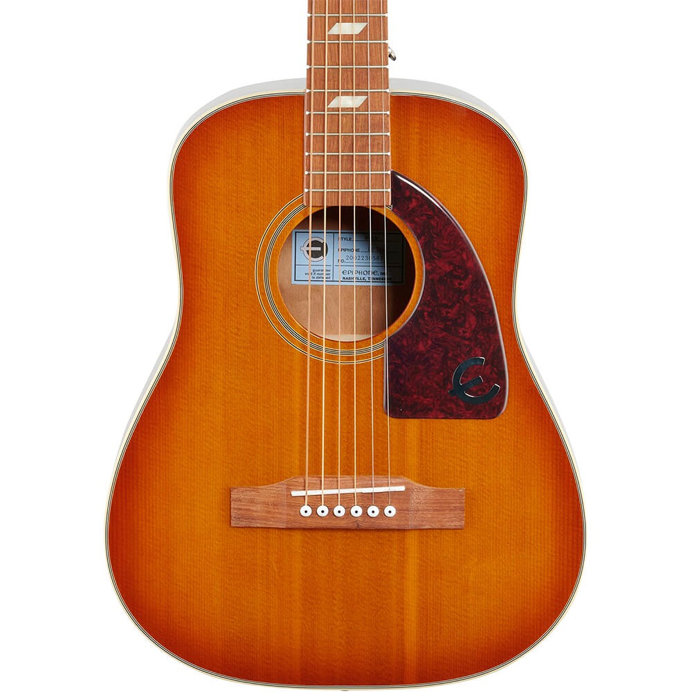 O Lil' Tex Travel Acoustic/Electric captura a aparência e o som clássicos do icônico Epiphone Texan, mas é dimensionado para facilitar a viagem. Ideal para novos jogadores! Apresentando um tampo em abeto maciço com acabamento tradicional Faded Cherry, braço em mogno, hardware Epiphone, ponte granadillo e captador acústico passivo. Bolsa gig incluído.