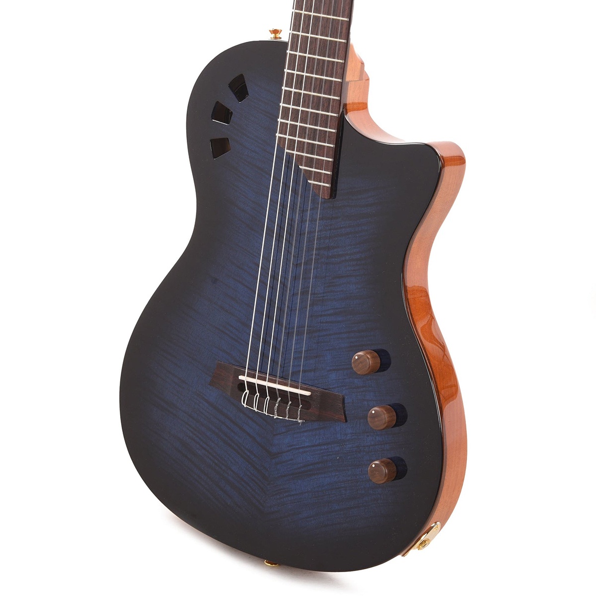 O violão possui um corpo de mogno com câmaras internas que o tornam mais leve e que melhoram significativamente a ressonância. Essa construção permite que a parte superior do instrumento vibre mais livremente, resultando em um som acústico puro e uma maior liberdade ao tocar. Além disso, os orifícios sonoros, cuidadosamente posicionados, foram desenhados para otimizar a vibração do instrumento e realçar a riqueza tonal das cordas de nylon.
