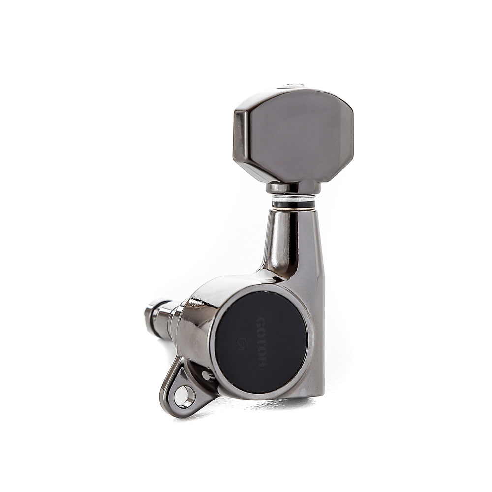 Tarraxa para Guitarra Blindada com Trava Magnum Lock (R6) Canhoto em acabamento na cor Cosmo Black, 6 unidades, acompanha parafusos, Gotoh SG381MG-07R CK/WS02.